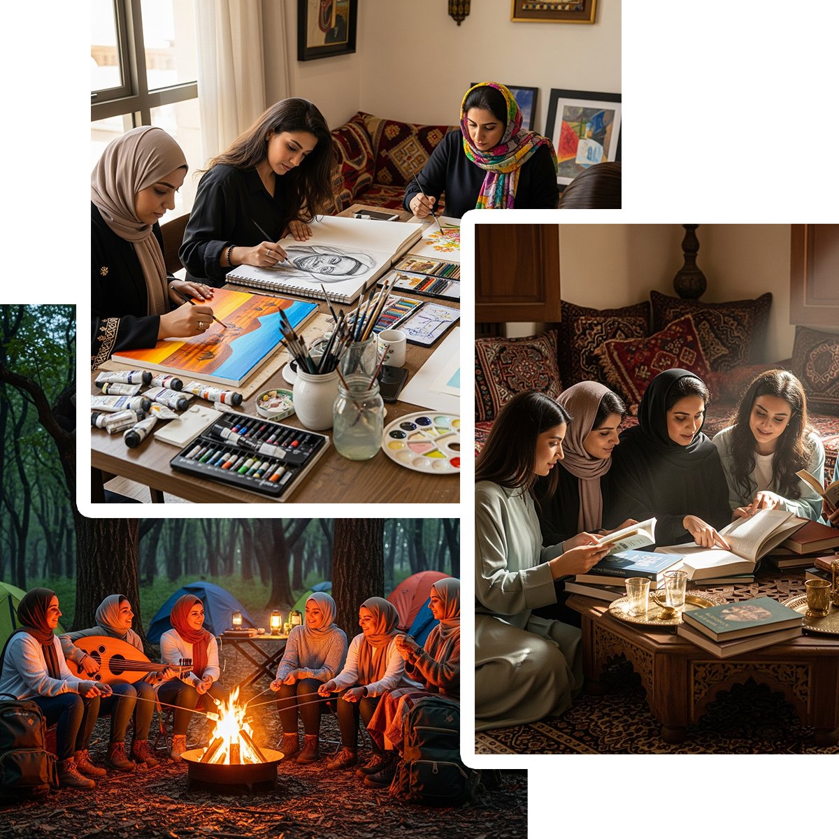 الرحلة تنسج بين الجسد والروح مساحات للتعبير، التمكين، والانغماس في الحضور.أنشطة نابضة، جلسات بوح واكتشاف، لحظات سكون، ومفاجآت رقيقة تلامس أعماقكِ برفق.كل تفصيلة خُلقت لتقربكِ منكِ… بصدق، واحتفاء بجوهرِكِ الحقيقي